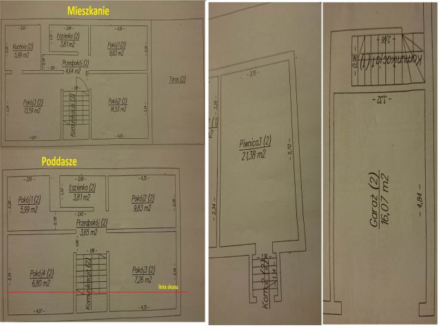- przynależnej do lokalu piwnicy ( ok.40 m2) oraz współudziału w połowie strychu (ok.32 m2).